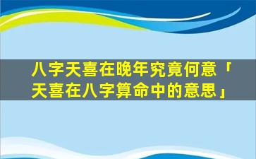 如果八字天喜出现在晚 🐛 年(一般在60岁 🐡 以后),通常有以下几种解读: