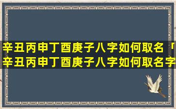 根据“辛丑丙申丁酉 🌷 庚子”八字取名,需考虑以下几点: