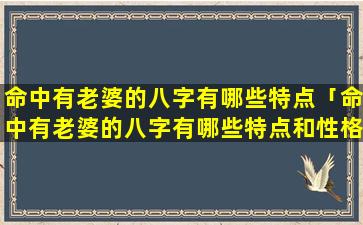 命中有老 🕷 婆的 🐡 八字特点 💐