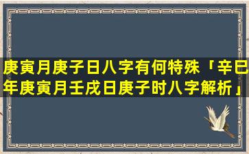 壬寅年庚寅月庚子 🐱 日 🌾 八字的特殊性: