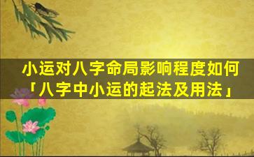 小运,又,称流年大运是八字命理学中用于推算运势变化的重要概念。它。反,映,了。个人在特定时期的运势吉凶小运与大运 🐋 的作用类似但周期 🐞 较短一般为十年或五年一小步