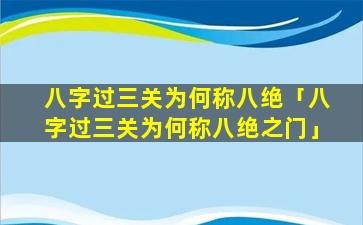 “八字 🌴 过三关”并“不被称作八 🌿 绝之门”。