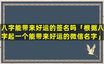 根据现有的科学知 ☘ 识 🐼 和普遍共识,八字或签名本身并不具备带来好运的能力。