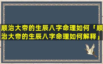 顺 🐶 治大 🌺 帝生辰八字 🐦 :