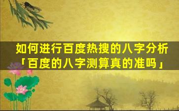 如何 🦁 进行 🐺 百度热搜的八 🦢 字分析