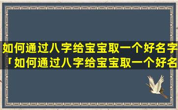 如 🌸 何通过八字为宝宝取一 🐒 个好名 🪴 字和姓名