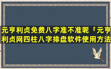 元亨 🦁 利贞网 四柱八 🌾 字网络在线排 🐡 盘