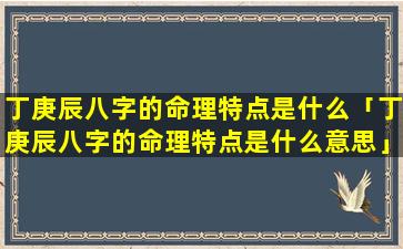 丁庚辰八 🍀 字的 🦋 命理 🍁 特点
