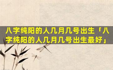 至于哪个月哪一天出生最好,则,需要结合具体八字来判断不能一概而论一 🌾 。般,来,说对于八字纯阳的人以下出生时间可能较好: