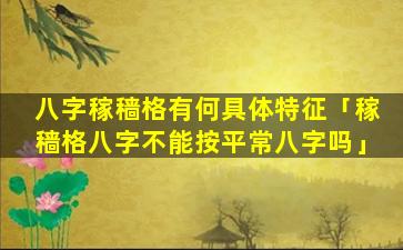 八字 🕊 稼穑 🦟 格 🐋 的具体特征: