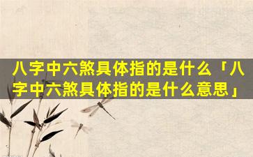 六煞,是,八字命理中的一种神煞具体指的 💐 是:
