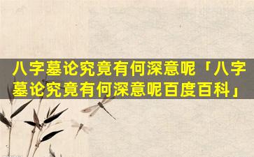 慰藉哀 🐕 思:八字墓论通过简洁的文字,表,达了生者对逝者的哀思和追忆寄托了对 🐋 后世的祈愿。