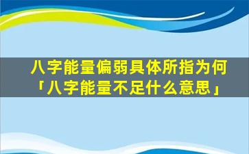 八字 🦄 能 🌷 量不足指的是八字五行中某些五 🕊 行元素过弱或缺失,导致命格中相应的能量不足。