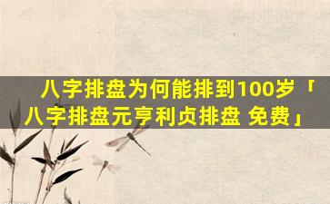 八 🐱 字排盘 🦆 无 🌼 法排到100岁。
