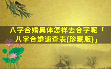 八字合 🌲 婚中的合字方法 🌷