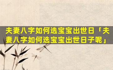 根据夫妻八 🐳 字选择 🦅 宝宝 🐘 出世日子