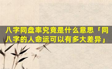 八字同盘率是指两个人的八字中,有相同天干地支的个数与八个 🌺 字总数的比例。