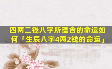 4两 🐶 2钱 🌴 命的性 🌷 格与命运