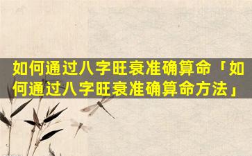 八 🦢 字旺衰 🦋 准 🌾 确算命方法