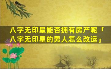 以下因素可能影响八 🌻 字无 🌸 印星的人拥有房产: