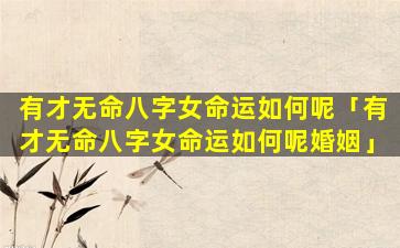 有才无命八字女命 🐝 运如 🦊 何呢