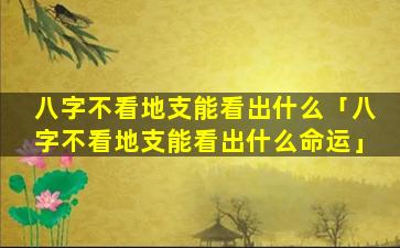 仅凭八字中的天干而忽略地支,所,体现的命运信息准确性会大大降低因为地支:在八字中,占,有,重:要的地位它代表着人的出生年月 🐒 日时等信息蕴含着丰富的命运信息包 🐛 括