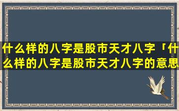 股市 🌸 天才八字 🌲 特征 🐟 :