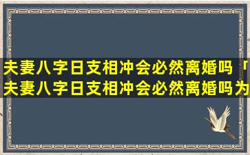 因 🐡 此,夫,妻八字日 🌾 支相冲是否会离婚需要具体分 🦅 析八字中的整体情况。