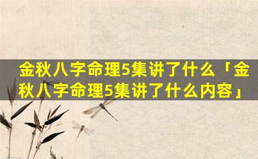“金秋八字命理5集”讲5了 🦄 个不同的故事 🐡 ,分别基于八字命 🐎 理学进行讲解:
