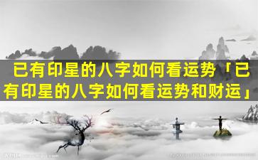 已有印星的八字如 🐯 何看运 💮 势和财 🐛 运