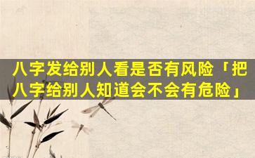 八字是传统 🪴 命理学中用来 🌼 推算人一生命运的一种方法。将八字发给别人看,可能会存在一定的风险: