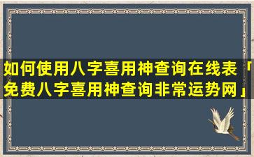 八字 🌺 喜用 🐠 神在线查询免费网站 🐠