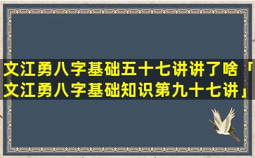 文江勇 🐬 八 🐬 字基础知识第九十七 🪴 讲