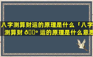 八字五行测算是一种 🐳 古老的中国命理学说,它,以一个人的出生年月日時推算出八个干支通过这八个干支的五行属性来判断一个人的命格 🦁 和运势。