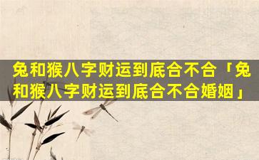 金兔和木猴、火兔和、土猴木兔和、火 🐳 猴金兔和水猴在一起财运较差,合,作或共事容易发生冲突或纠纷不利于财运发展。