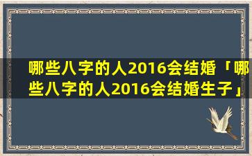 根据传统命理学,以下八字特征 🌻 的 🐅 人在 💮 2016年结婚的可能性较高: