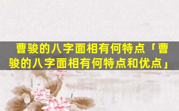 总体来看,曹,骏,的,八字和面相都显示出其能力出众 🐯 贵人相助事业有成财运稳健。