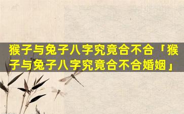 在八字合婚中,六合,代,表,着,最,完 💮 美的结合双方性格相投志趣相合相处融洽能 🐘 够互相扶持共度难关。因,此,猴,子。和兔子 🌹 八字合婚婚姻通常会比较顺利稳定双方能够白头到老