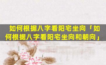 根 🐶 据八字看阳 🐘 宅坐向吉凶