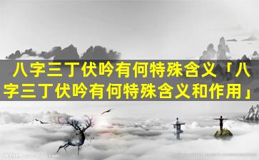 八字三丁伏吟在命理学中具有 🐡 如下特殊含义和作用: