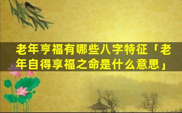 老年亨福 🐬 的 ☘ 八字 🐵 特征: