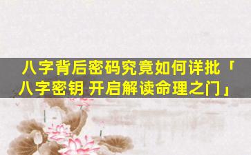八字 🦄 密钥:开启解 🐒 读命理之门 🐦