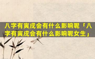 寅 🌸 戌会对命主的影 🌻 响 🕷 :