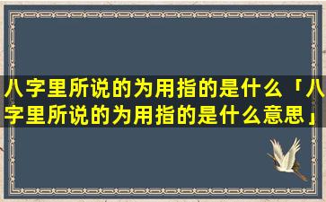 八字命理中 🌸 的“为用”是指八字格局 🐅 中对命主最有利最、能发挥命 🐴 主潜能的五行元素。
