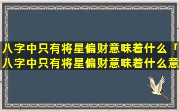 “八字中 🕸 只有 🦢 将星偏财”的含义