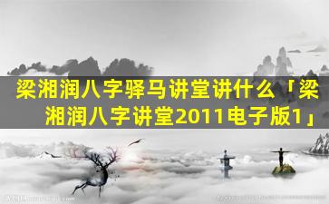 梁湘 🌲 润八字讲 🍁 堂2011电 🐶 1子版