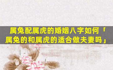 属兔 🐕 配属 🐳 虎的婚姻 🦊 八字