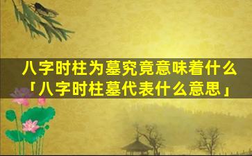八 🐕 字 🐯 时柱墓代表如下含义 🦈 :