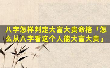 八 🐴 字判定大富大贵命格的 🐈 要点