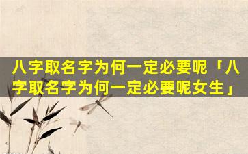 男孩 🕊 采用八字 🌿 取名必要性的原因 🐠